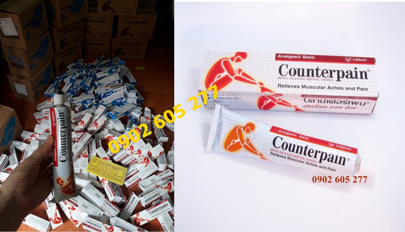 – Dùng Cao xoa bóp Counterpain Thái Lan để làm giảm đau nhức cơ và đau kết hợp với spraining, căng thẳng, thương tích bầm nhỏ, hoặc chấn thương thể thao. Counterpain không có tác dụng phụ khi dùng quá liều, càng đau nhức càng thoa & xoa bóp để đạt hiệu quả cao